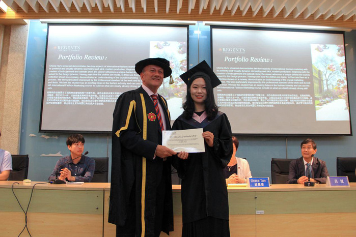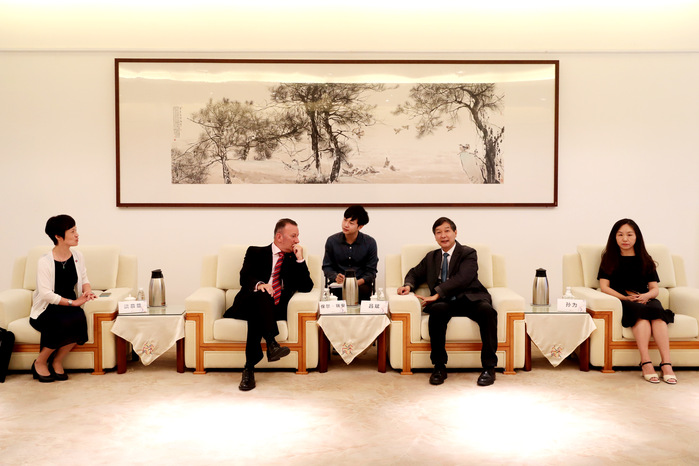 2019年6月26日上午, 英国摄政大学副校长保尔·瑞安、驻华市场部主任谈慕菲一行到访我校。我校党委常委、副校长吕斌在行政楼贵宾室会见来宾。双方就进一步加强合作,继续推进学分互认交换生项目、研究生合作项目、师生交换学习以及开展学术、展演交流进行了洽谈。教务处、国际交流处相关人员以及今年全额奖学金获得者参加会见。 随后,嘉宾一行来到设计学院101报告厅,参加了英国摄政大学硕士项目全额奖学金授予仪式。英国摄政大学保尔·瑞安副校长一行,我校吕斌副校长以及教务处、国际交流处、设计学院相关人员出席活动。设计学院程晖同学被授予全额奖学金。(国际交流处) |