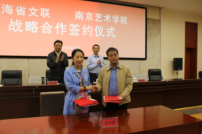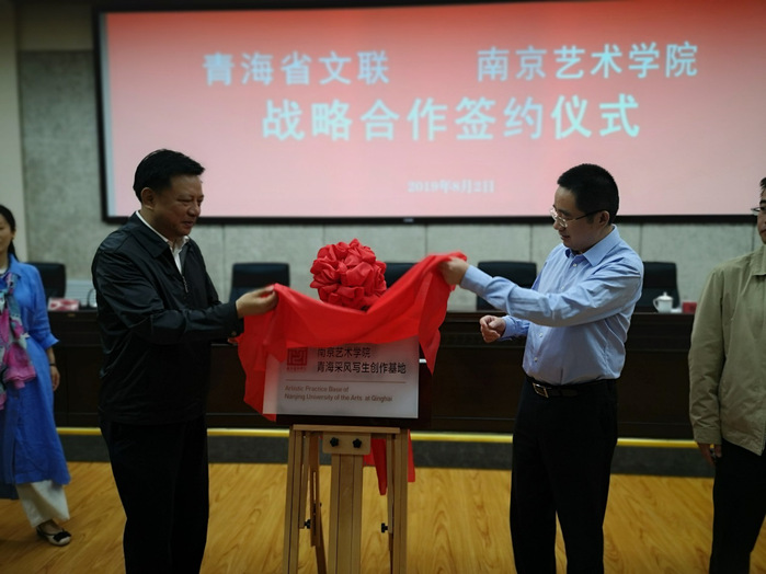 8月2日上午,青海省文联与南京艺术学院战略合作签约仪式在青海美术馆举行。青海省文联党组书记、主席班果和我校党委书记杨明共同为“南京艺术学院青海采风写生创作基地”揭牌。青海省文联副主席秦光明与副院长张捷代表双方签订战略合作协议。青海省文联副主席谷晓恒主持仪式。校党委常委、宣传部长、音乐学院党总支书记吉爱明,两办、发展办、音乐学院的相关同志参加了签约仪式。 班果在致辞中指出,与南艺签订战略合作协议,对于青海省文化艺术界进一步拓宽视野、创新发展,更好地团结引领广大文艺工作者不忘初心、牢记使命,自觉承担起举旗帜、聚民心、育新人、兴文化、展形象的使命任务,有着非常重要的现实意义和深远的历史意义。他希望合作双方本着“优势互补、互惠互利、真诚合作、共同发展”的原则,精诚合作,以真诚的态度、实干的精神和扎实的行动,让合作共赢之树枝繁叶茂、硕果累累。 杨明在致辞中介绍了我校的办学历程和发展特色。他指出,青海是多民族、多宗教、多文化的聚集地,拥有着悠久而灿烂的文明史和丰富而宝贵的民族文化资源。此次双方的合作,不仅是南艺释放办学优势、积极服务西部文化建设发展的重要举措,也是学校拓展办学资源、推动事业高质量发展的现实需要。南艺将以此次合作为契机,在江苏对口帮扶青海的大背景下,不断加深与青海文化艺术界的联系与交流,以更加开放务实的态度,推动协议各项内容的落实落地,为助力青海文艺人才队伍建设、推动优秀传统文化的创造性转化创新性发展作出积极的贡献。(发展办) 班果主席和杨明书记共同为“南京艺术学院青海采风写生创作基地”揭牌 秦光明副主席与张捷副院长共同签署了双方的合作协议 |