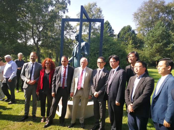 应丹麦奥胡斯市政府邀请,2019年8月29日-9月1日,校党委副书记、院长刘伟冬,国际交流处副处长俞睿、美术学院教师程楠等赴丹麦出席辛德贝格雕像揭幕仪式及图片展开幕式。 8月30日,刘伟冬院长一行参加了南京市与奥胡斯市合作备忘录签署仪式。奥胡斯市长雅各布·邦德斯加德、中国驻丹麦大使冯铁、南京市市长代表彭振刚等出席活动。活动中播放了南京艺术学院与丹麦VIA大学学院合作拍摄的“南京与奥胡思”城市宣传片,短片以文化和艺术为主题表现了两城人民的交流与联系,获得在场嘉宾的肯定和赞扬。 刘伟冬院长出席辛德贝格雕像揭幕仪式 8月31日上午,刘伟冬院长一行出席了在奥胡斯市马瑟里斯堡纪念公园举行的“辛德贝格”雕像落成揭幕仪式。此次活动是为了纪念辛德贝格在南京大屠杀期间庇护数以万计难民的义举,向世界传递中丹两国人民的和平心声。丹麦女王玛格丽特二世、冯铁大使等出席活动,丹麦女王为雕像揭幕。受南京市政府委托,我校教师程楠为丹麦女王创作了肖像画,并作为纪念礼物赠送给女王。 刘院长在辛德贝格图片展开幕式上致辞 8月31日下午,刘伟冬院长一行参加辛德贝格——丹麦的“南京英雄”:辛德贝格事迹图片展并致辞剪彩。刘院长在致辞中表示,南京艺术学院有幸承担了《辛德贝格——丹麦的“南京英雄”》展览的策展与制作。展览展示了辛德贝格先生1937年来到中国上海以及南京期间的所见、所闻、所为,包括他跟随英国战地记者史蒂芬斯期间记录、报道的战争实况。辛德贝格在南京江南水泥厂参与建立难民区,救助、庇护数以万计的中国难民的事迹,彰显了辛德贝格人性的温暖和光辉。图片展深刻揭露了日本侵略者在中国,尤其在南京犯下的滔天罪行。 刘伟冬院长为辛德贝格图片展开幕剪彩 展览现场 1985年以来,南京艺术学院师生参与了侵华日军南京大屠杀遇难同胞纪念馆主题浮雕创作、设计了“国家公祭鼎”,还复排了反战歌剧《秋子》并在国际艺术节演出,与多国艺术院校共同组织国际和平海报双年展。这些活动都以艺术这种世界性“视觉语言”跨越国家、民族、语言和文化障碍,传达人类的共识和公知,唤醒记忆、彰显立场,让和平的价值观在全世界广泛传播。今天,我校工业设计学院张明教授等主持了《辛德贝格——丹麦的“南京英雄”》设计布展,更让我们看到以艺术形式传递、传播史实,唤起人们反思历史、维护和平决心的当代价值。 访问期间,刘伟冬院长还与丹麦VIA大学学院副校长Louis教授,以及丹麦大学联合会代表等人进行会晤,商讨了共建中丹文化教育艺术交流中心事宜,希望继续加强两国艺术、文化及教育的交流。(国际交流处) |