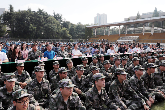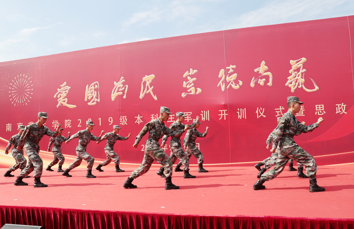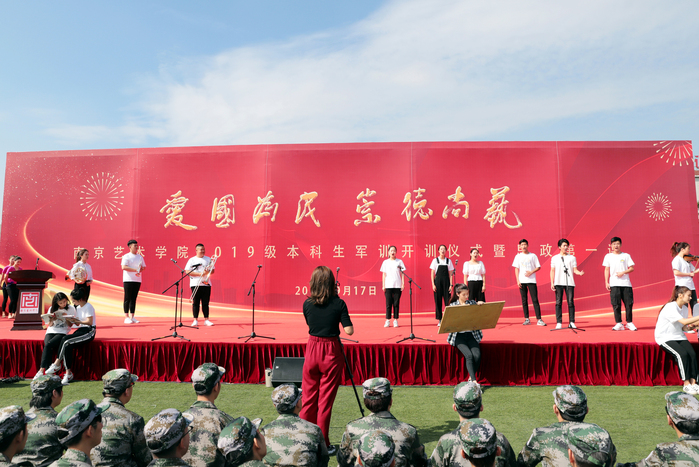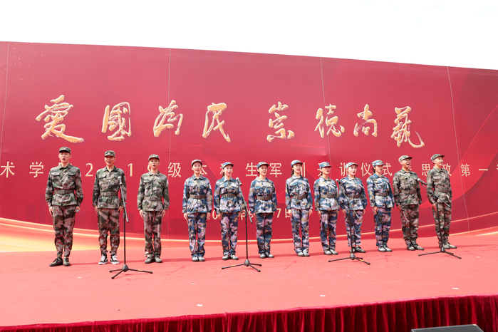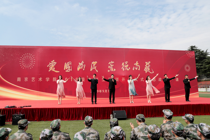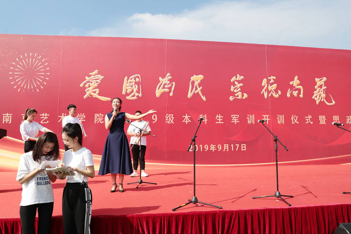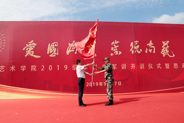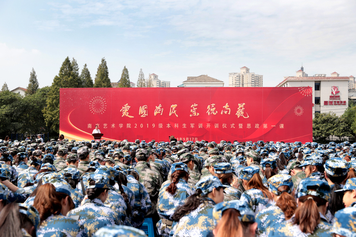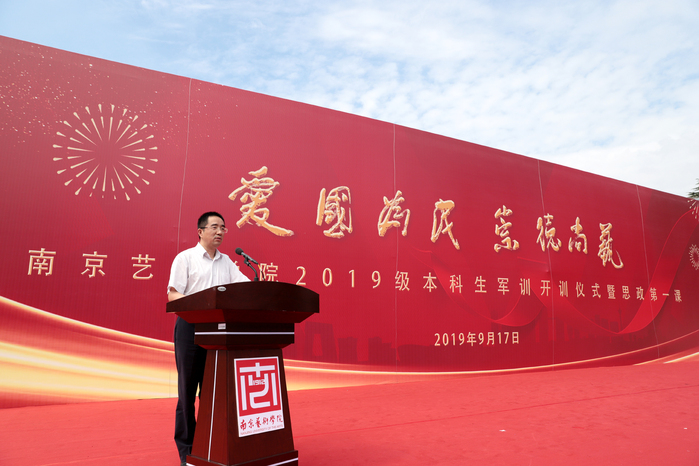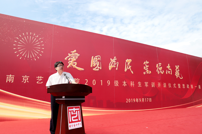 9月17日上午,校党委书记杨明走上讲台,为2019级2300余名新同学在思想上引航,开讲了一堂特殊的思政课。校党委副书记、院长刘伟冬为本次思政第一课书写标题“爱国、为民、崇德、尚艺”。在这次思政课堂上,2019级新同学激情高唱《歌唱祖国》,以拳拳爱国之心为新中国成立70周年喝彩。 思政课开讲之前,举行了2019级新生军训开训仪式。中国人民解放军73096部队政委唐开喜出席并致辞。杨明书记向承训部队授予了军训旗,刘伟冬院长宣读了军训领导机构名单。校党委常委、副院长张捷主持仪式。校党委常委吉爱明、李彤,相关职能部门和二级学院负责同志参加活动。 在课堂上,杨明书记深情地讲述了南艺办学107年来的光辉历史和卓著成绩。他说,南艺的先辈们在中国共产党的领导下,以胸怀天下、救亡图存的家国情怀,勇担使命、发奋图强,既成就了中国现代艺术教育史上的一段传奇,也书写了学校百年历史画卷上那一抹鲜亮的红色。回望百年办学历史,在“闳约深美”校训的引领下,在“不息变动”精神的激励下,南艺培养出一代又一代优秀的学子。同学们选择南艺,就是选择了“闳约深美”和“不息变动”的精神基因和价值追求,这也是全体南艺师生共同的精神灯塔和价值航标。希望新同学继承南艺先辈“爱国为民”的高尚情怀和“崇德尚艺”的优良传统,接过开创南艺第二个百年辉煌的历史接力棒,做艺术梦想的守护者、践行者,做南艺精神的传承者、弘扬者,做新时代中国特色社会主义的建设者和接班人,在实现中华民族伟大复兴之路上,勇于开拓、乐于奉献,肩负起建设社会主义文化强国的重任,同时创造自己精彩的艺术人生。 作为一所综合性艺术院校,我校始终把思想政治工作贯穿教育教学全过程,致力于将思政教育与艺术紧密结合,逐步开创有艺术院校特色的思想政治工作高质量发展新局面,今天的思政第一课正是南艺思政教育与学生艺术专业结合的一个缩影。 这堂思政课程,结合了学校部分专业特色,用艺术的手段引领学生思想,凸显了浓厚的“艺术范儿”。影视表演专业师生展示了大学生活的早功日常;舞蹈表演专业学生们的舞蹈《不息》用艺术形式展现了中华民族在危难时刻昂扬奋发、奋勇向前的拳拳爱国、报国之心;唢呐与流行乐器演奏专业学生们的乐器合奏《大中国》、播音主持专业学生们带来的《读中国》更是表达了南艺学子们对祖国母亲的热爱和立志为伟大祖国做出贡献的精气神! 近年来,南京艺术学院以习近平新时代中国特色社会主义思想为指导,认真学习贯彻习近平总书记在全国高校思想政治工作会议、文艺工作座谈会和全国教育大会上的讲话精神,坚持与时代同步伐,坚持立德树人,不断深化教育教学改革,以高质量发展突出内涵建设,彰显中国特色,追求国际一流,突出综合优势,坚持用习近平新时代中国特色社会主义思想铸魂育人,为培养“人民的”的艺术专业人才做出了应有的贡献。(宣传部) 校党委书记杨明为2019级新生上思政第一课 校党委书记杨明讲话 校党委副书记、院长刘伟冬宣读军训领导机构名单 校党委常委、副院长张捷主持 中国人民解放军73096部队政委唐开喜致辞 授旗仪式 |