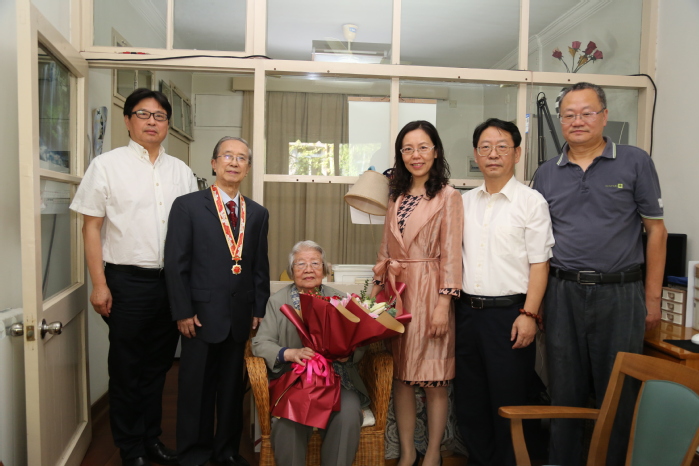 在中华人民共和国70华诞即将到来之际,我校民革支部老党员吴式铨获授中共中央、国务院、中央军委颁发的“庆祝中华人民共和国成立70周年”纪念章。吴老是早年活跃在解放军文艺系统的文艺骨干,新中国成立后,他立足专业,默默耕耘在艺术教育的第一线,为新中国艺术事业的发展培养了大批人才。他继承先辈遗志,拥护中国共产党的领导,在发扬家学的同时,也将革命的精神种在一代又一代后辈的心中。 校党委统战部高度重视本次纪念章发放工作。9月21日下午,民革江苏省委主委、江苏省人民政府副省长陈星莺,民革江苏省委副主委薛国安,在我校党委副书记、院长刘伟冬,党委常委、党委统战部部长沈义贞的陪同下亲自将纪念章送到吴式铨的家中,向吴老致以衷心的祝贺和亲切的慰问。在一片欢乐祥和的氛围中,陈星莺主委和吴老夫妇话家常、聊旧事,向老党员报告新时代民革的新举措、新发展,对多年来老党员对民革工作的关心和支持表示诚挚的感谢。吴式铨老人一身正装迎接奖章,当陈星莺主委亲自将纪念章挂到老人脖子上时,老人眼中闪烁的激动的泪光,他对党和国家的关怀表示无比感动,对获得如此重要意义的纪念章感到惊喜。他说,与党和国家给予的荣誉相比,自己所做的一切是微不足道的,有生之年定会不忘初心,发挥余热,为社会做出更多的贡献。陈星莺说,把党中央的关怀及时送到每一位纪念章获得者的心坎上,体现了尊崇英雄、彰显功绩的仪式感和庄重感,我们要坚持中国共产党的领导,坚持中国特色社会主义道路,不忘合作初心,继续携手前进,积极建言献策,为实现中华民族伟大复兴的中国梦继续做出应有的贡献。 纪念章使用铜胎镀金材质,通径为50毫米,主要元素为五星、“70”飘带、团锦结、如意祥云和光芒,主色调为红色和金色。其核心部分为五星,代表国家荣誉。“70”飘带象征中华人民共和国70年奋斗历程。团锦结环绕在五星和“70”飘带周围,寓意全国各族人民大团结,构建人类命运共同体的愿景。章体外环以如意祥云、光芒构成,象征人民对美好生活的向往,同时表达隆重庆祝中华人民共和国生日,礼赞国家富强、民族振兴、人民幸福的辉煌成就,以及在70年辉煌奋斗成就的基础上不忘初心、继续前进的坚定决心。纪念章是党和国家对为中国特色社会主义伟大事业建设做出贡献者的嘉奖,是极具政治性的国家荣誉。(党委统战部)