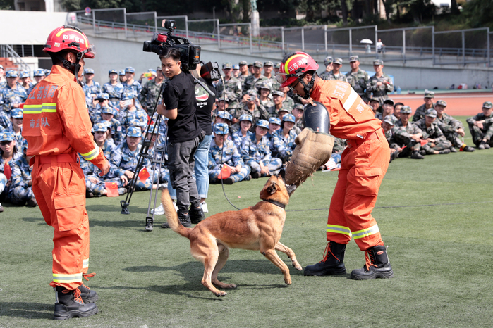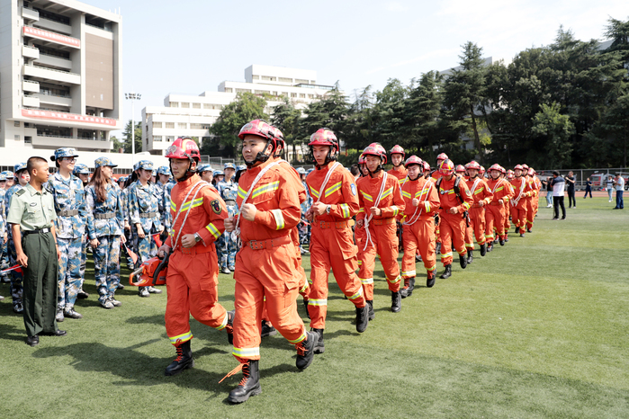 为切实培养提升师生的消防安全意识和自防自救能力,积极营造良好的学校消防安全环境,9月24日上午,江苏省消防安全“进军训”宣传活动在我校举行。我校党委常委、副院长张捷,江苏省消防救援总队防火部部长丁余平,校党院办、宣传部、学工处、保卫处等部门负责人,河海大学等兄弟院校代表,省、市各级消防指战员,我校军训承训部队教官及2019级新生参加活动。活动由保卫处处长丁怡主持。 张捷在讲话中介绍了我校百年办学历史及取得的硕果,肯定了学校消防安全工作取得的成效,强调了消防安全“进军训”的重要意义,并代表学校向长期支持、帮助我校的江苏消防各级部门表示了感谢。 丁余平在讲话中表示,消防安全“进军训”宣传教育活动,将现场教育培训、线下活动开展、网络媒体互动等各种形式结合在一起,增强了消防宣传教育的广泛性、针对性、实效性,切实在校园里筑起一道保护大学生生命安全的防火屏障。 宣传活动上,南京市消防救援支队进行了灭火救援技能展示,搜救犬技能展示,现场为学生授课培训,分组讲解教学逃生技巧、绳结技能,体验灭火救援装备。同学们热情高涨,纷纷进行了在线知识问答和互动体验。 宣传活动在《我和我的祖国》现场大合唱的旋律中圆满结束,同学们分组参观了消防车及器材装备。 通过本次消防安全“进军训”宣传活动,我校师生进行现场观摩、培训学习,掌握了报警、火场逃生、初起火灾扑救等知识,提高了自身的消防安全知识水平和逃生自救能力。(文/保卫处;图/宣传部、保卫处) |
