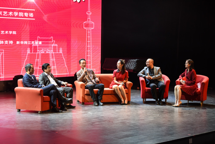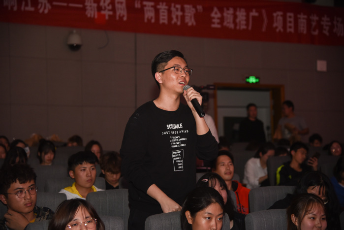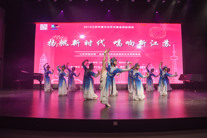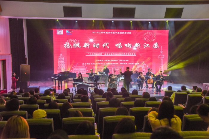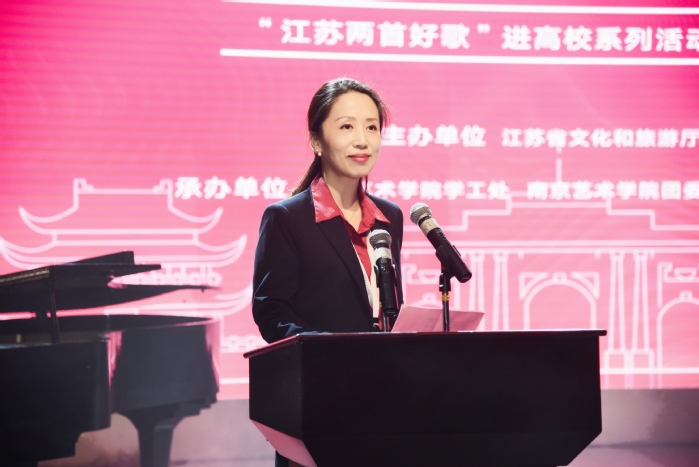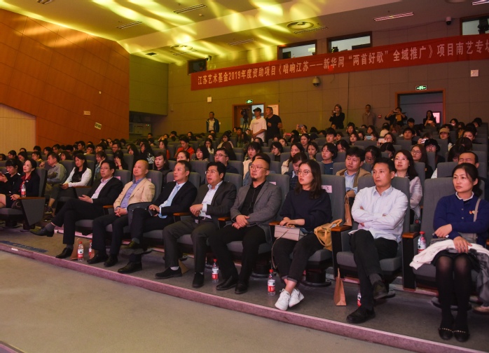 2019年10月23日晚,“扬帆新时代,唱响新江苏”江苏“两首好歌”活动走进我校,向我校师生展示了江苏独特的文化风韵和艺术风情。校党委常委、副院长张捷,江苏省文化和旅游厅艺术处处长官天涛,新华网江苏有限公司副总经理陆健健,我校学工处、团委、各二级学院相关师生参加了活动。活动由我校影视学院青年教师陈力洋主持。 随着我校江苏省第四届文华奖获奖作品《水调》的音乐声响起,江苏艺术基金2019年度资助项目——《唱响江苏——“两首好歌”全域推广》项目专场交流会在流行剧场拉开帷幕。我校江苏省第四届文华奖获奖作品昆舞《昆韵》为活动现场带来了浓浓的“江苏氛围”。 我校江苏省第四届文华奖获奖作品《水调》 我校江苏省第四届文华奖获奖作品《昆韵》 校党委常委、副院长张捷在致辞中表示,好的歌曲,词能达意,曲能传情,两者相得益彰、完美融合。而《我在江苏等你》《我的江苏我的爱》两首江苏好歌唯美朴实、直抵人心,曲调节奏舒缓、悠扬动听,充分体现了江苏的人文特质和地域风情,展现了江苏的发展成绩和江苏人民的幸福生活,道出了江苏人民的情感共识和美好愿景。此外通过歌曲,也看到了文艺工作者“为时为事”的时代担当,看到了他们关注时代、谱写时代、讴歌时代的艺术追求,看到了他们以人民为中心、扎根人民、扎根生活的艺术创作导向。张院长希望我校年轻学子通过此次活动,深刻领会文艺工作者的精神内涵,感受新时代的江苏人文精神和发展脉搏,锐意进取、守正创新,努力创作思想精深、艺术精湛、制作精良,无愧于时代、无愧于历史、无愧于人民的文艺作品! 校党委常委、副院长张捷致辞 一首好歌是一个地方的靓丽名片,一首好歌能展示一个地方的气质。江苏省文化和旅游厅艺术处处长官天涛表示,《我在江苏等你》《我的江苏我的爱》两首经典好歌,是江苏省文化和旅游厅亲自策划、重点打造的音乐作品,风格鲜明,优美动听,具有浓郁江苏地域特色,充分展现出江苏地域文化的丰富性、多样性、包容性。 江苏省文化和旅游厅艺术处处长官天涛致辞 为让观众深入了解《我在江苏等你》《我的江苏我的爱》这“两首好歌”,青年词作家廖建中,著名青年歌唱家、国家一级演员张其萍等作品主创人员,以及江苏省文化和旅游厅艺术处副处长许其兵、新华网江苏有限公司副总经理陆健健在活动现场分享了“两首好歌”从幕后的征集、创作、拍卖到台前的呈现、宣传和推广的故事,我校流行音乐学院作曲教师陈雷还从专业的角度对两首好歌进行了深入解读。 访谈交流 期间,我校附中青年教师白云升和我校校友、扬州大学青年教师盛迪先后合唱了《我在江苏等你》《我的江苏我的爱》,让观众现场感受“两首好歌”的魅力。此外,旅美著名小提琴演奏家、我校特聘教授盛小华老师为师生们精心演奏了小提琴独奏曲《我在江苏等你》《我和我的祖国》。 歌曲演唱演奏 据了解,“两首好歌”还将在江苏省乃至全国范围内更深入地推广,走进基层、走进百姓。(学工处)