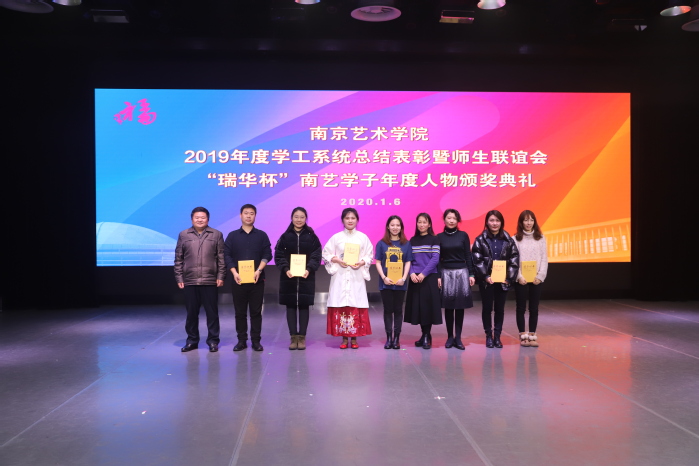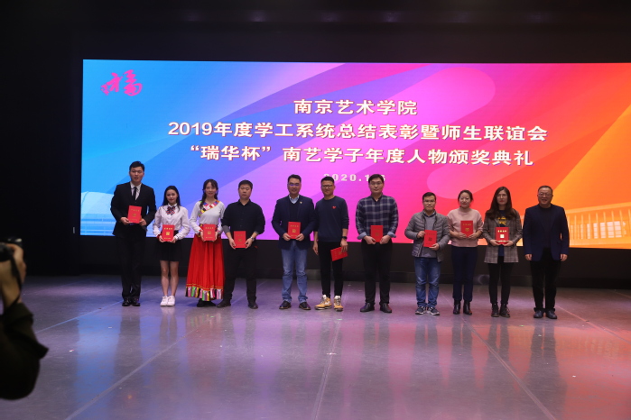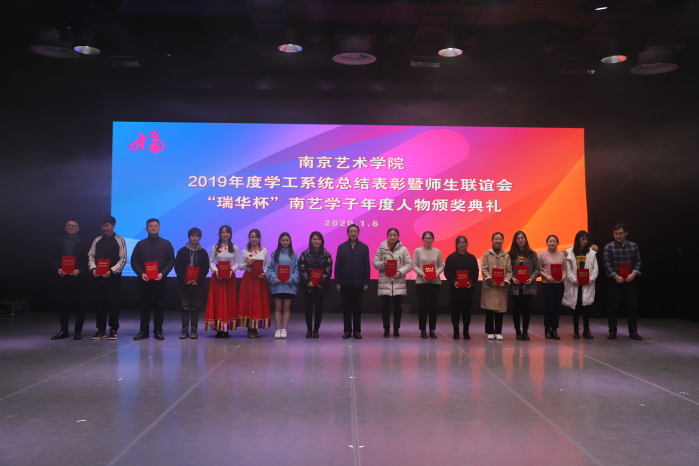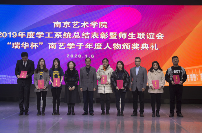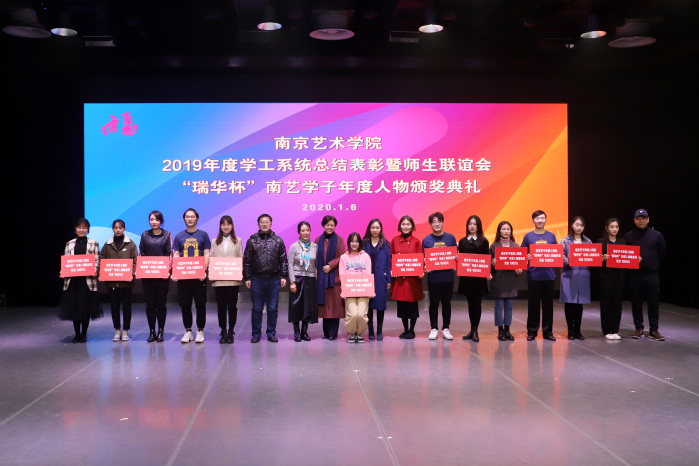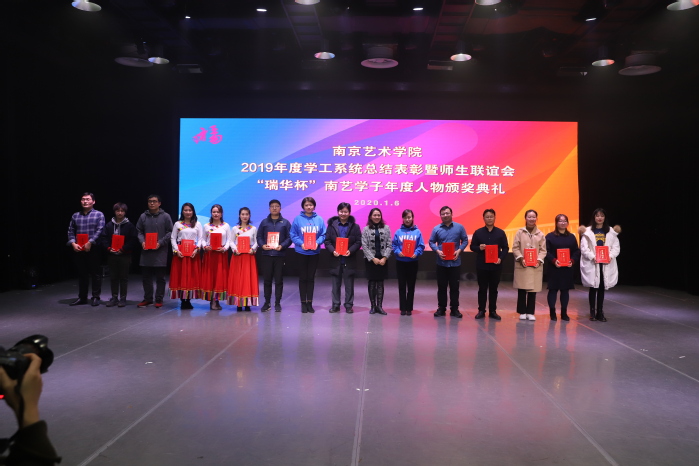 1月6日,2019年度学工系统总结表彰暨师生联谊会、“瑞华杯”第五届南艺学子年度人物颁奖典礼在演艺大楼红椅剧场隆重举行。校党委书记杨明,党委常委、副院长吕斌、张捷,党委常委、纪委书记、省监委派驻监察专员陈咏梅,党委常委、宣传部部长吉爱明,党委常委、组织部部长李彤,江苏瑞华慈善基金会秘书长张颂杰出席。全体学工系统教师、南艺学子年度人物以及部分学生代表参加了本次活动,曾在学工线工作的“老”学工代表及相关职能部门负责人受邀出席。