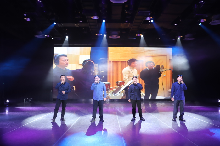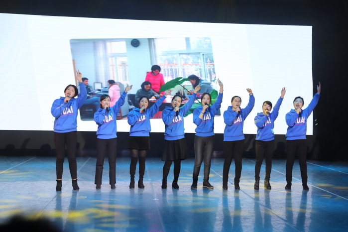 由学工“仙女团”和“金刚F4”组合带来的充满感动回忆的合唱《最初的梦想》《光阴的故事》引起现场阵阵欢笑。