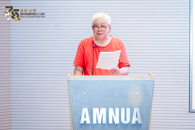 李剑平致辞 南艺校友、上海美术电影制片厂高级美术设计师冯健男曾为动画爱好者创作出《九色鹿》等大批经典动画片。他怀着激动的心情重返母校,表达了对本次活动成功举办的美好祝愿!