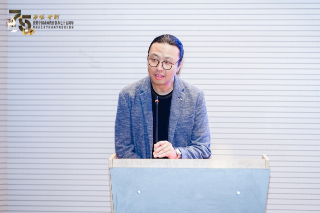 嘉宾合影 中国动画学会会长马黎,教育部动画数字媒体教指委副主任、中国美术家协会动漫艺委会主任、原北京电影学院动画学院院长李剑平教授,南京艺术学院副校长李彤教授,教育部动画数字媒体教指委副主任、南京艺术学院原副校长张承志教授,南京艺术学院设计学院原院长邬烈炎教授等领导和专家出席开幕式。来自中央美术学院、中国人民大学、湖北美术学院、华东师范大学、杭州师范大学、江苏凤凰美术出版社、江苏省原力数字科技有限公司、天津美术学院、南京观源文化传媒有限公司等院校、企事业单位的嘉宾共同见证了展览的开幕。 李彤在致辞中表示,2025年适逢南艺前身之一苏州美专动画科创立75周年,是中国动画教育的一个重要里程碑。未来南艺动画学科的发展既要传承早期动画传统与文化土壤,又要把握数字化、智能化带来的变革,实现从专业技术到文化战略的系统架构转型。希望各界同道一起,以更清晰的知识增量、更坚实的原创作品和更有效的社会服务,在国家文化战略与现代化产业体系的宏大进程中,续写中国动画的新篇章。