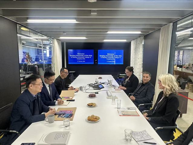 在新西兰梅西大学,俞锋与梅西大学副校长Margaret Maile教授、创意艺术学院国际与硕士项目主任Scott Wilson教授及设计学院院长Sven Mehzoud教授等会谈后,双方就硕士联合培养、联合研究项目及联合艺术展演等方面签署了合作备忘录,共同致力于推动文化创意产业的繁荣发展。