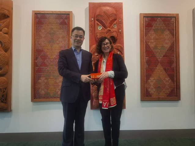 在新西兰奥克兰大学,俞锋与该校艺术与教育学部执行部长Katherine Smits教授、国际事务部部长Lawrence Zhang教授等会谈,双方就教师短期交流、学生双学位项目、科研合作及联合艺术展演等议题达成多项合作意向,并约定将细化协议,推动项目早日落地。
