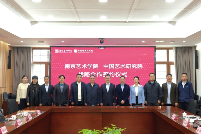 10月27日上午,南京艺术学院与中国艺术研究院战略合作签约仪式在校行政楼三楼会议室隆重举行。中国艺术研究院院长、党委副书记周庆富,艺术与文献馆馆长郑光旭,书法院名誉院长管峻,艺术与文献馆副馆长邵晓洁,艺术与文献馆研究部副主任霍超,办公室主任王冠,南艺党委书记俞锋,校长张凌浩,副校长张捷,党委常委、党校办主任、宣传部部长李志鹏出席签约仪式,发展办、科研处等相关职能部门主要负责人参加活动。