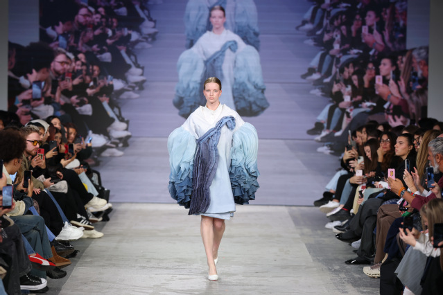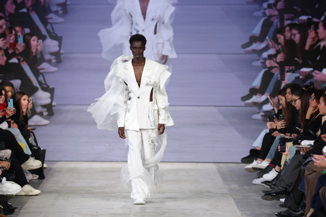 当地时间2025年10月29日,意大利大学生时装周米兰Tortona展区上演了一场以“艺术与科技”为主题时尚对话。活动以服装为载体,探索“科技与美”融合的多元可能性,呈现了一系列具有实验性的未来可穿戴设计。南京艺术学院设计学院姬益波教授率队参与,集中展示了19套优秀服装设计作品。这些作品均立足艺科融合的创作理念,结合数字技术,运用算法生成的非遗纹样,并采用零废料激光切割、3D打印一次成型等数字化工艺,向世界展示中国设计教育对产业前沿问题的深入探索,体现了南艺近年来在设计教育领域取得的显著成果。