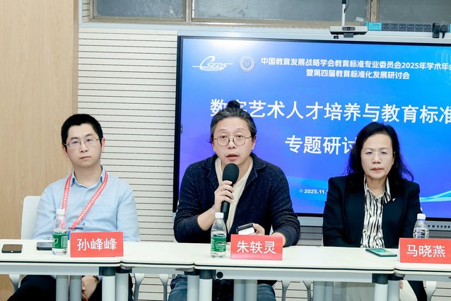 分会场三以“数字艺术人才培养与教育标准专题研讨会”为主题,会议由南京艺术学院数字艺术学院副院长朱轶灵主持。南京艺术学院数字艺术学院联合北京师范大学未来教育高精尖创新中心、南京投石智能系统有限公司等单位牵头开展,汇聚了江苏省内各大高校数字艺术教育界的专家学者及企业代表,旨在共同探讨面向未来的数字艺术人才培养路径与教育标准建设。 中国教育发展战略学会教育标准专委会理事长、北京师范大学原党委常委、副校长陈光巨教授发表致辞。他指出,在人工智能、虚拟现实等新技术重塑艺术生态的今天,培养兼具艺术审美与科技素养的复合型人才已成为关乎国家文化软实力的战略要务。必须构建“艺工融合”的育人新范式,建立“动态演进”的教育标准体系,并打造“开放共生”的协同创新生态,以应对当前人才培养中面临的技术与艺术脱节、教育与产业脱节等核心挑战。