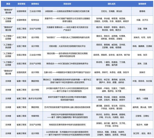 目前,本届特等奖作品《冰路使者——北极航运运营模式与运载方式创新方案》已亮相第十四届苏州文化创意设计产业交易博览会,省赛二等奖作品《艺赋中医——数字交互背景下艺术表达在中医药文化儿童科普中的创新应用先行者》已入驻南艺·元和塘大学生文创园,展现出我校学子在艺术与科技融合领域的创新活力。 站在新的起点上,我校将持续优化“挑战杯”的赛事组织工作,不断推动艺术创作与前沿科技深度融合,助力更多优秀学子在创新实践中成长成才。(团委) |