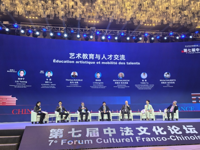 11月2日至4日,由欧美同学会(中国留学人员联谊会)、法国展望与创新基金会共同主办的第七届中法文化论坛在湖南省长沙市隆重举行。全国人大常委会副委员长、欧美同学会会长丁仲礼,法国前总理、展望与创新基金会主席让-皮埃尔·拉法兰出席论坛。我校党委副书记、欧美同学会会长李向民代表江苏省归国留学人员出席活动,并在“艺术教育与人才交流”论坛做题为“百年学府 闳约深美”的主旨发言。本届论坛以“多元共生与和谐共进——开辟中法文化交流新格局”为主题,旨在促进两国文化在多元共生中相互借鉴、和谐共进,共同开辟中法文化交流的全新格局。