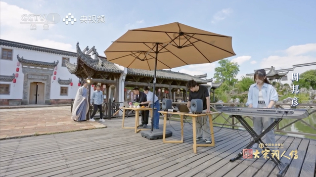 11月7日晚,我校音乐科技师生团队亮相央视一套节目《大宋词人传・周邦彦》,运用AIGC、歌声合成等技术,以新质生产力重塑千年雅韵《苏幕遮》,开启了一场宋代词人、音律大家“周邦彦”与现代音乐科技的艺术对话。