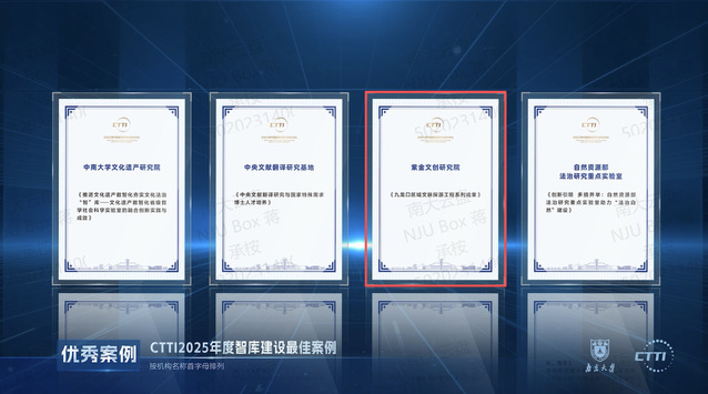 作为国内最权威的智库评价体系,CTTI高校智库百强榜由南京大学中国智库研究与评价中心研发,其评选依托CTTI系统收录的810家高校智库数据,从智库产品、活动、媒体影响力等客观指标与专家主观评价双重维度,遴选出代表国内高校智库最高水平的百强阵容。其中,A+等级作为“金字塔尖”,全国仅有40名,占高校智库总数的4.9%。 由紫金文创研究院院长李向民教授主持的《九龙口区域文脉探源工程系列成果》获评CTTI2025年度智库建设最佳案例。李向民的论文《中国式现代化视域下的人文经济学》(原载《人民论坛·学术前沿》)荣获CTTI2025年度智库研究优秀成果特等奖。谭倩的咨政报告《文化强省战略下江苏“读城”行动读什么?怎么读?》获得优秀成果二等奖。