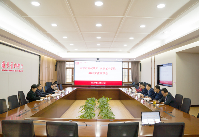 俞锋对市委统战部一行的到来表示诚挚的欢迎,对市委统战部长期以来对南艺及统战工作给予的关心和支持表示感谢。他介绍了学校统战工作的优良传统、民主党派基层组织和统战团体的基本情况。他指出,学校党委一直以来高度重视统战工作,严格落实统战工作责任制清单,实施“1234”工作体系,以大统战工作格局为引领,夯实“美美与共·艺术同心”江苏高校统一战线同心教育实践基地建设,以二级党组织统一战线工作考核为抓手,打造“艺术服务社会”“同心”“爱我中华”三个系列品牌,突出思想引领有深度、服务大局有高度、统战工作有力度、联谊交友有温度的四个效应,以高质量统战工作助力学校事业高质量发展。他强调,学校将以此次调研交流为契机,依托南京统战工作联盟,进一步深化统战工作改革创新,与其他高校、科研院所、企业一起,共绘同心圆,为南京“十五五”高质量发展汇聚合力。