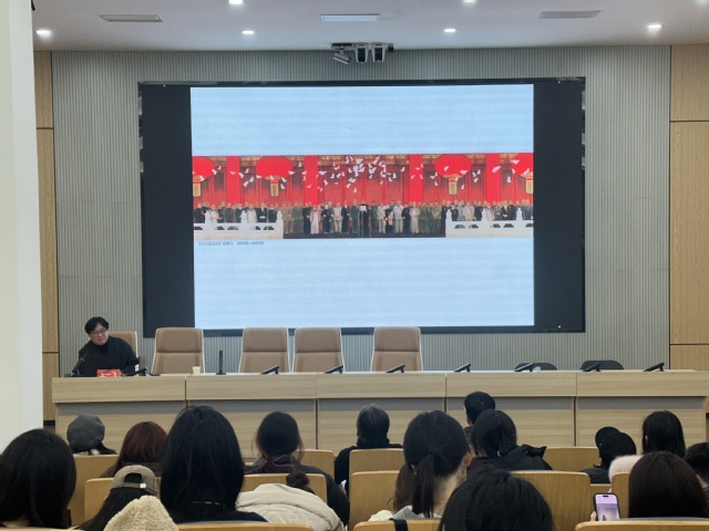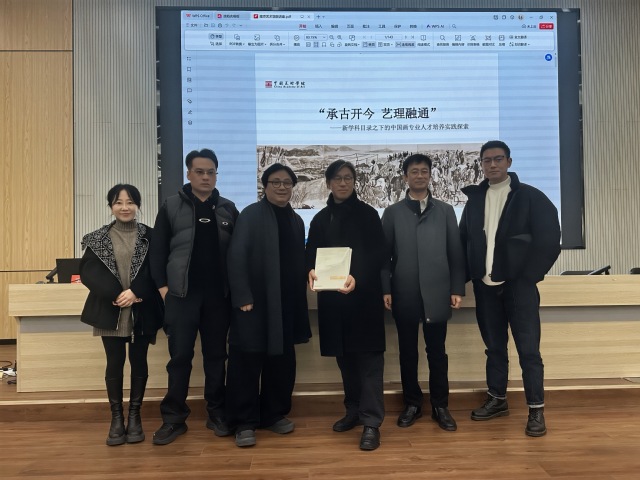 下午,王一飞的专题讲座《承古开今艺理融通——新学科目录之下的中国画专业人才培养实践探索》在美术与书法学院大会议室举行。讲座由刘春主持。王一飞从南齐谢赫“六法”中的“应物象形”讲起,梳理中国画写生的千年文脉。结合本次大赛作品呈现的客观再现性、主观表现性、创作研究性三类创作取向,他强调写生不仅是技艺训练,更是感知苏醒、情感扎根与创造的源头。他针对当下中国画创作与教学,提出了创作题材与方法创新、AI时代的传统与创新平衡、学科调整下的教学改革三点思考。在创作方面,王一飞结合自身丰富的评审经验,为在场师生提供了实用的创作与投展建议。