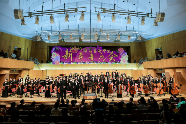 2025年12月31日晚7:30,南京艺术学院音乐厅内气氛热烈。由南京艺术学院主办、南京艺术学院交响乐团演出的2026年新年音乐会在这里隆重举行。本次音乐会邀请居蕴、邹清宇和徐志廉三位指挥轮流执棒,这场音乐会不仅为观众带来了视听盛宴,也奏响了新年的华丽乐章。
