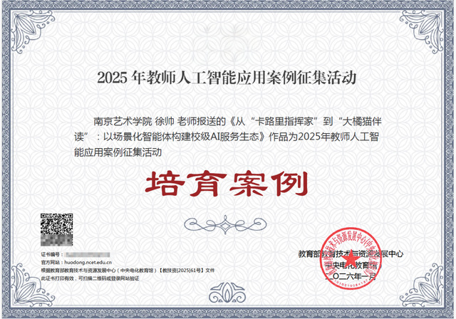 近日,由我校信息化建设管理中心教师徐帅开发并训练的“助育、助学AI智能体”系列应用,成功入选教育部教育技术与资源发展中心(中央电化教育馆)“2025年教师人工智能应用案例(培育案例)”。