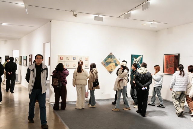 3月6日,由江苏省美术家协会担任指导单位,南京艺术学院与江苏省青年美术家协会共同主办,南京艺术学院美术馆、南京艺术学院设计学院及江苏省青年美术家协会漆画艺委会、江苏省艺术与科学中心联合承办的文化和旅游部2025年全国美术馆青年策展人扶持计划项目“漆润新语——当代漆艺术数智美育展”在我校美术馆开幕。南艺校长张凌浩,中国美术家协会副主席、江苏省文联副主席、江苏省美术家协会主席、南艺美术馆学术馆长陆庆龙, 江苏省美术家协会副主席、现代美术馆馆长赵震,江苏省青年美术家协会主席、金陵美术馆副馆长赵怡文,南艺原副校长张承志,南艺设计学院党委书记张健,研究生处处长、设计学院院长蒋杰,三江艺术学院院长丁山、设计学院副院长周庆,南艺教授李永清,南京师范大学教授吴可人,本次展览策展人徐轩露,以及江苏青年美术家协会主席团成员,各艺委会、地方青美协代表参加开幕式。