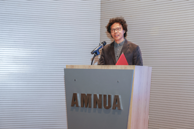 江苏省青年美术家协会主席赵怡文致辞 赵怡文指出,省青美协漆画艺委会于2023年正式成立,在赵震主席的引领推动与李永清、吴可人、张五力等顾问的指导下,成功凝聚起江苏青年漆画创作力量,搭建起专业的交流发展平台。此次“漆润新语”展览的核心单元成功入选文旅部2025年全国美术馆青年策展人扶持计划,这一殊荣不仅是对江苏青年艺术创作与策展实践的高度认可,更是对全体江苏青年艺术工作者的莫大鼓舞。展览在策展理念上实现了从单一展陈走向多维互动、从静态观看走向沉浸体验的重要突破,通过引入AI知识图谱等前沿技术,让传统技艺与数字媒介交织共生,同时以社区共创和中小学美育成果呈现,使漆艺真正融入日常生活。这份成绩离不开与南京艺术学院的深度携手,以及江苏省美术家协会、南艺设计学院、南艺美术馆的鼎力支持。他期盼各位领导、前辈同仁继续关注支持省青美协与江苏青年艺术家的成长发展,为青年艺术家提供更多学习、创作与交流的机会,让更多青年艺术人才的才华得以绽放。