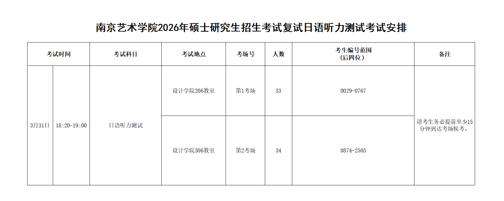 复试公告四:南京艺术学院2026年硕士研究生招生考试复试日语听力测试考试安排